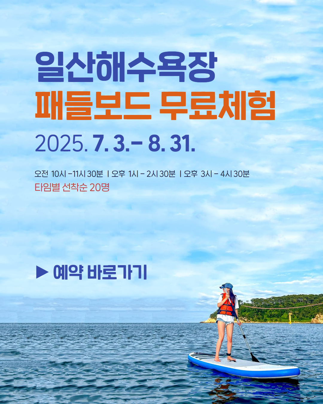 이미지 확대보기 이미지 확대보기 이미지 확대보기 이전 다음 제 목 일산청년광장 등 록 일 2025-07-11 내 용 일산청년광장 차없는 거리 -2025.7.12.~9.30. -매주 토요일 오후 2시~10시 -일산해수욕장 주진입로 일산해수욕장 패들보드 무료체험 -1일 3회, 타임별 선착순 20명 -온라인 예약 울산조선해양축제 -2025.7.18.~7.20. -일산해수욕장 일원 목록