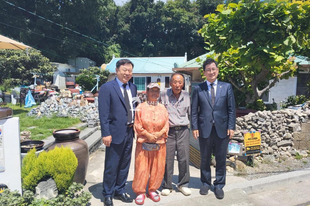 - 사진설명 김종훈 동구청장과 김태선 국회의원은 15일 80주년 광복절을 맞아 일산동에 소재한 독립운동가 故 성세빈선생 생가를 찾아 유족들을 위로하고 방문기념촬영을 하고 있다.