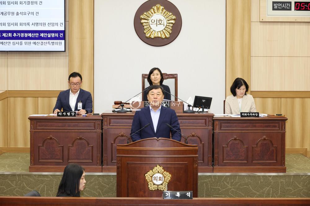 - 사진설명 김종훈 동구청장은 2일 의사당에서 가진 제230회 임시회 본회의에서 2025년도 제2회 추가경정예산안 제안설명을 하고 있다.