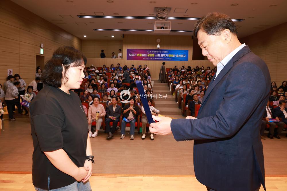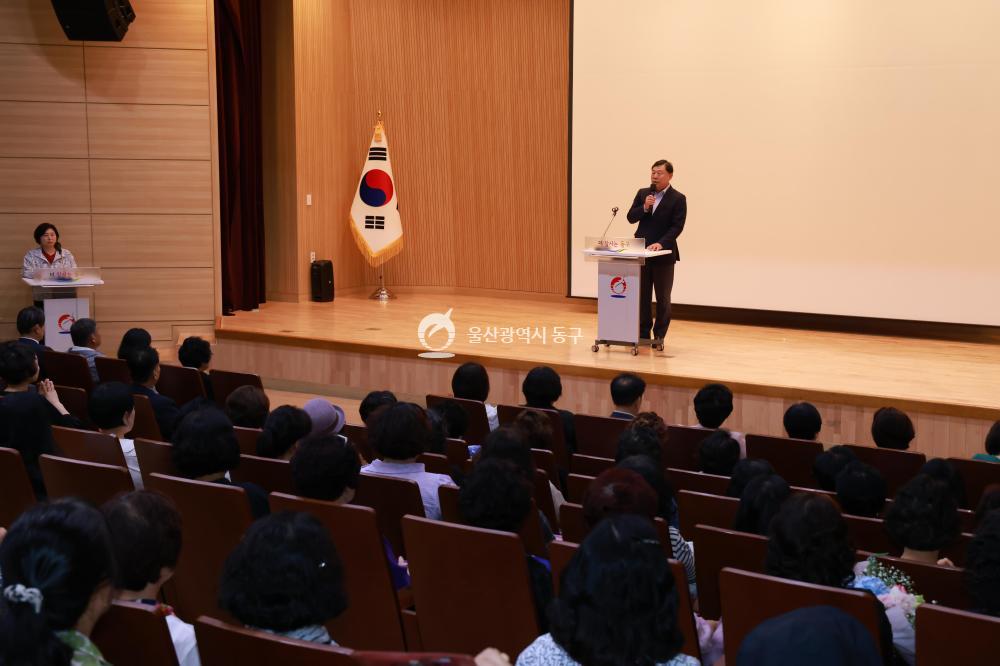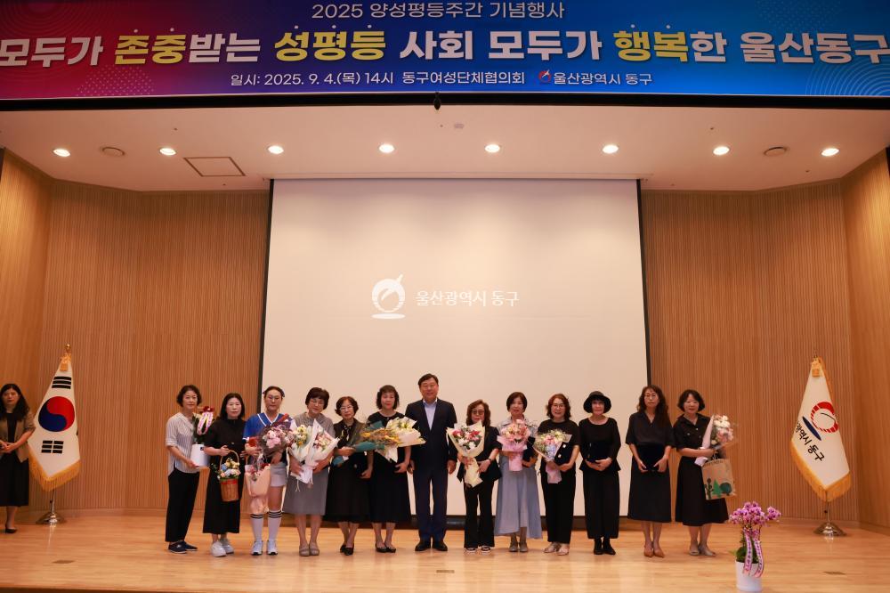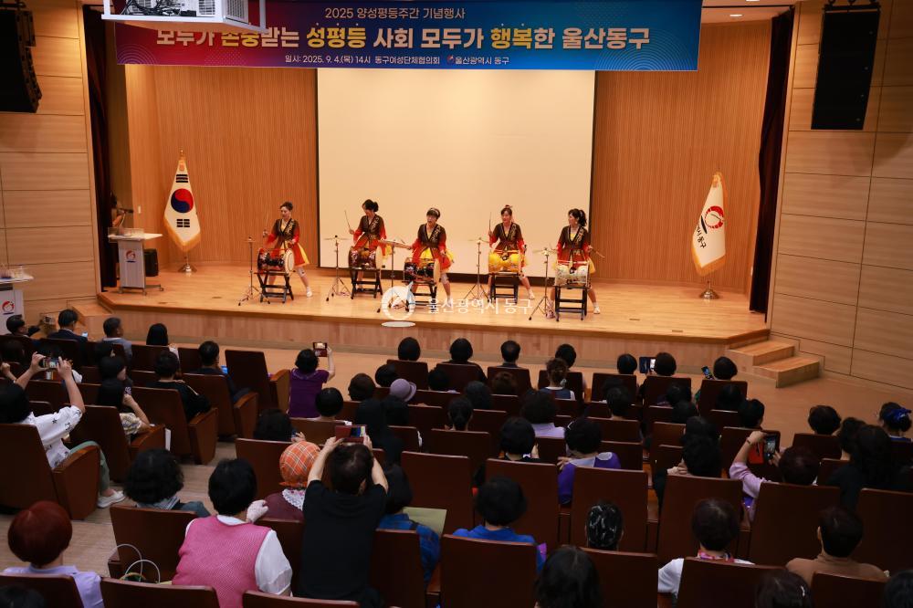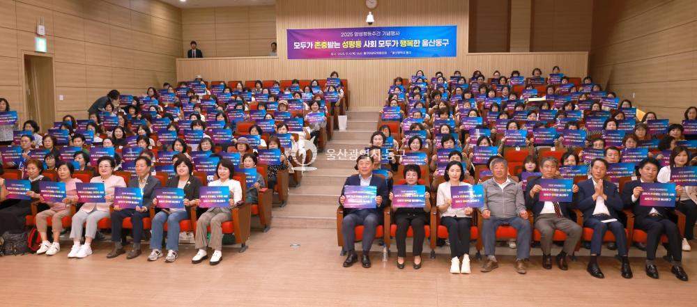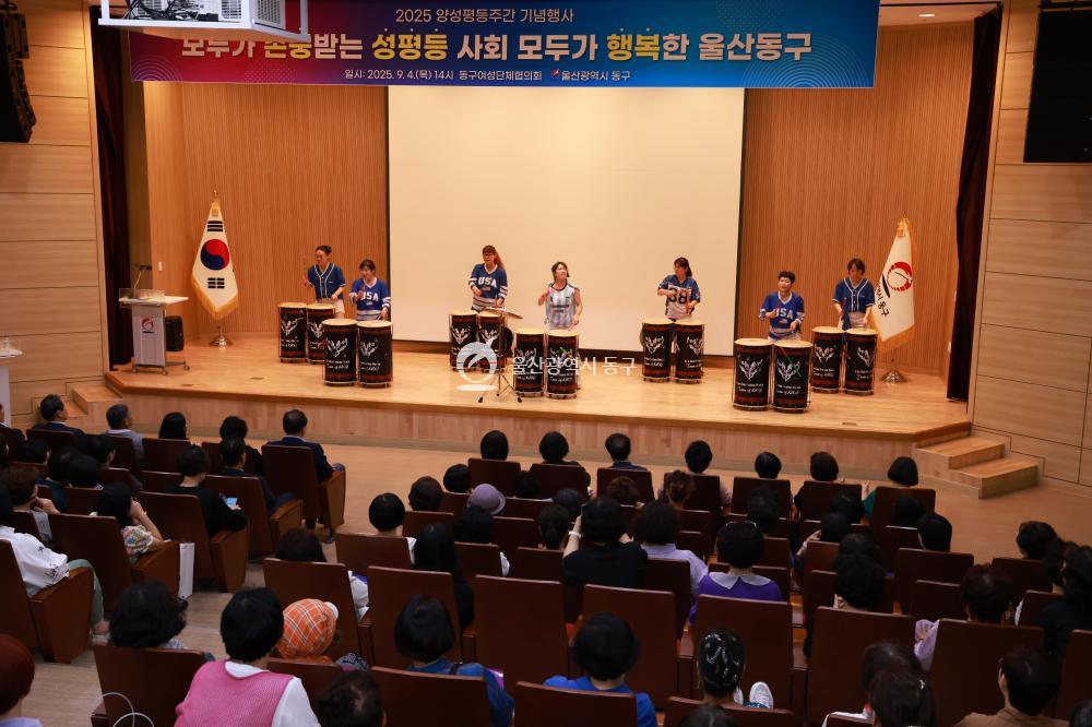 - 사진설명 동구는 4일 5층 중강당에서 김종훈 동구청장을 비롯한 내빈 및 동구여성단체협의회 회원들이 참석해 양성평등주간 기념식을 개최하고 유공자 표창 및 양성평등 퍼포먼스를 하고 있다.