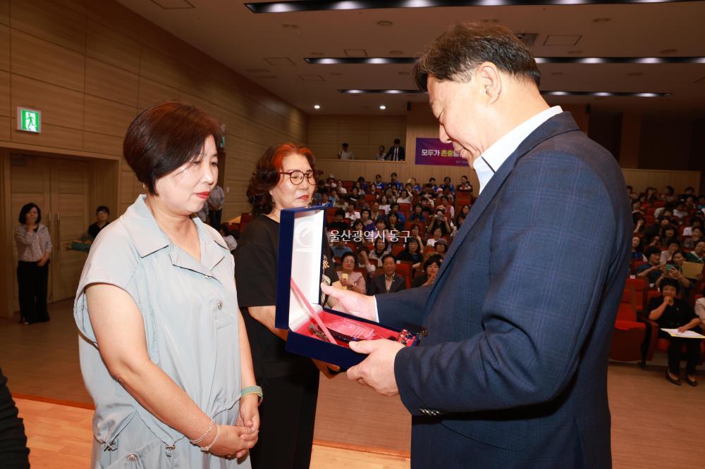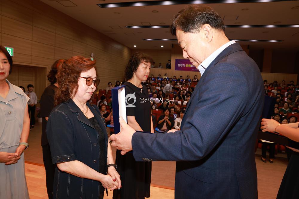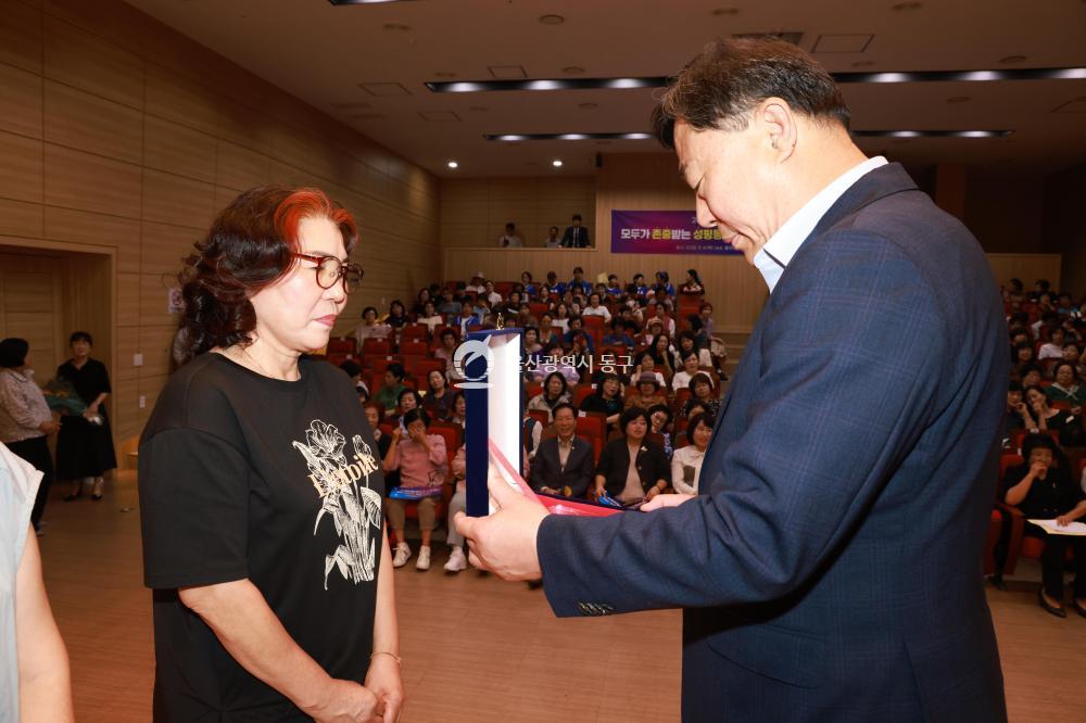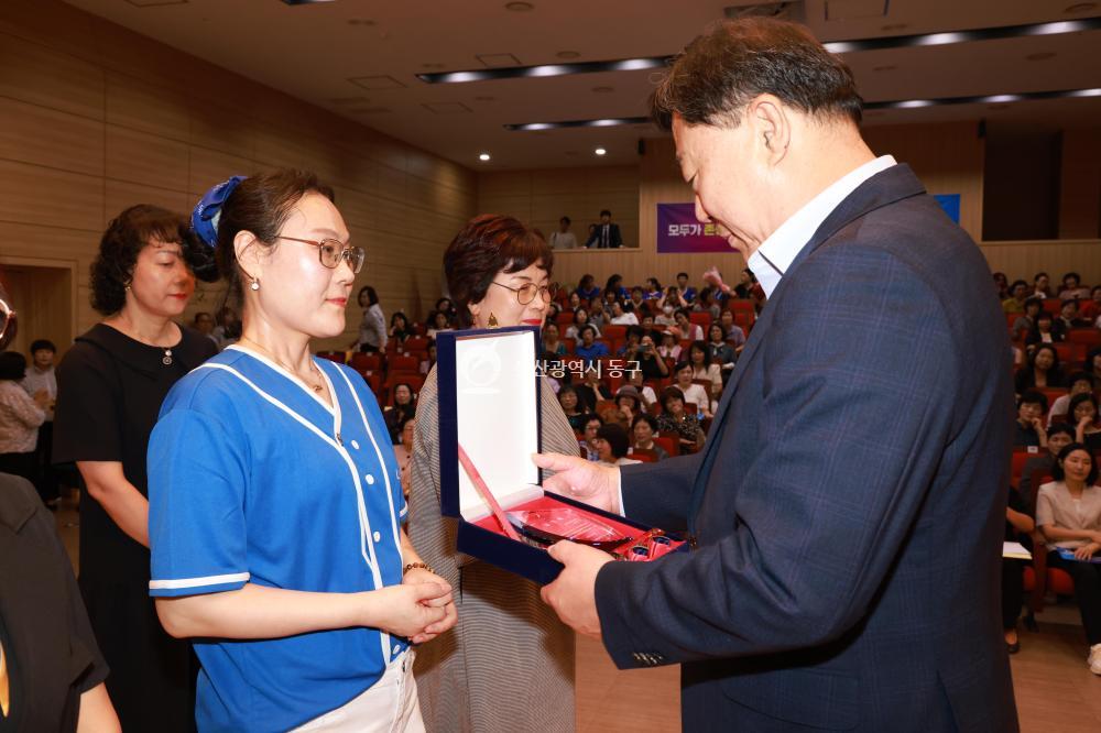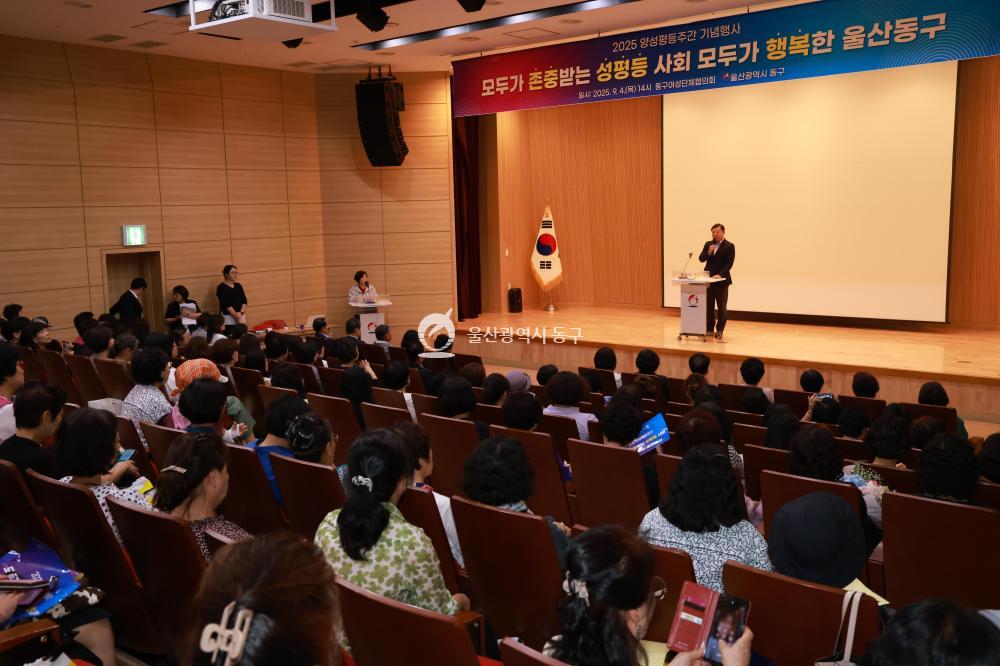 - 사진설명 동구는 4일 5층 중강당에서 김종훈 동구청장을 비롯한 내빈 및 동구여성단체협의회 회원들이 참석해 양성평등주간 기념식을 개최하고 유공자 표창 및 양성평등 퍼포먼스를 하고 있다.