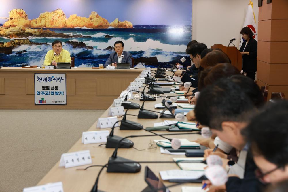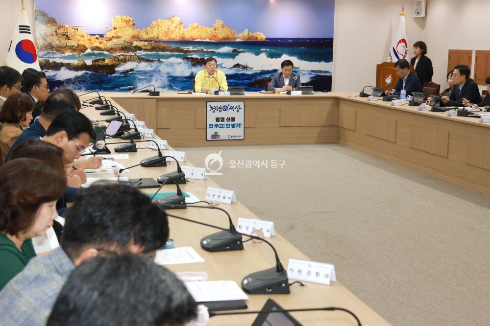 - 사진설명 동구는 29일 2층 상황실에서 김종훈 동구청장 주재로 부서별 과장들이 참석해 10월 월간업무보고회를 개최했다.