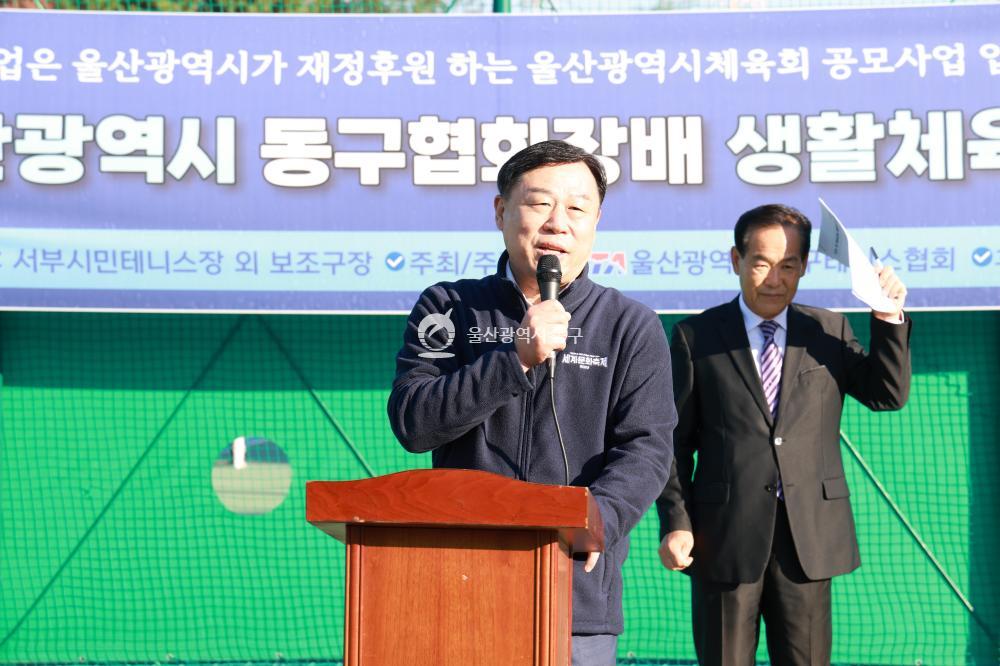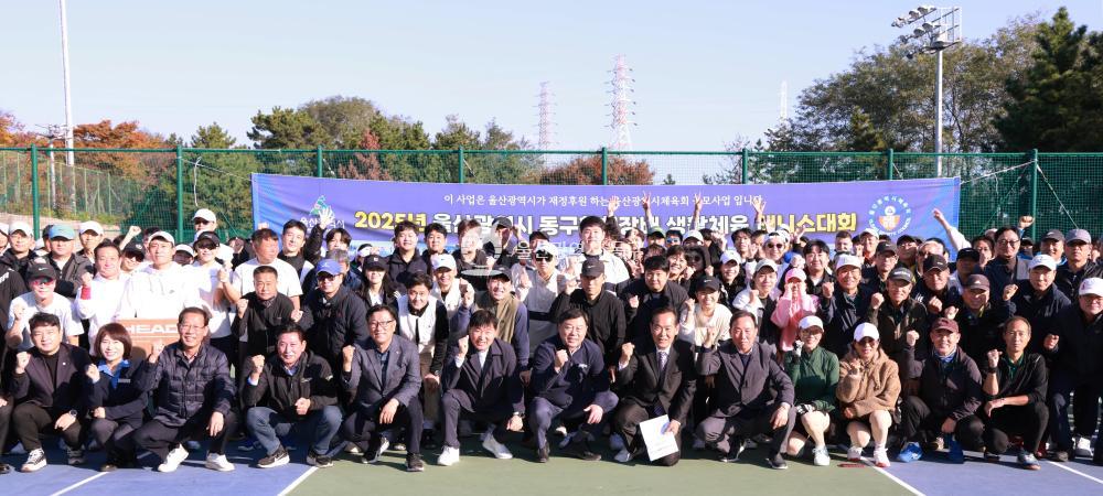 - 사진설명 울산 동구테니스협회는 2일 서부구장에서 동구협회장배 생활체육 테니스대회를 개최하고 김종훈 동구청장 및 내빈과 동호인 250여명이 참석해 개회식를 갖고 단체 기념촬영 및 명덕초등학교 테니스단 유소년 기부금 100만원을 전달했다.
