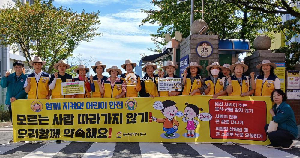 동구는 9월 23일 오후 2시 미포초등학교 앞에서 동구 안전 보안관과 함께 ‘어린이 유괴 예방 캠페인’을 실시했다.