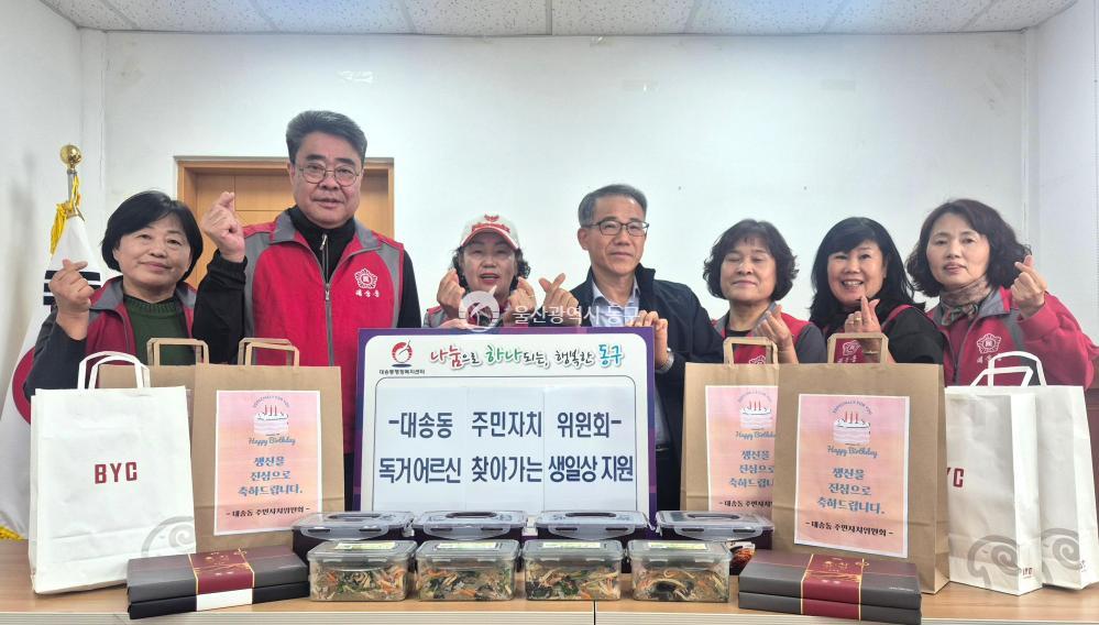 - 사진설명 울산 동구 대송동 주민자치위원회(위원장 김성태) 28일 독거 어르신 5세대를 대상으로 찾아가는 생일상 차림 지원사업을 가졌다.