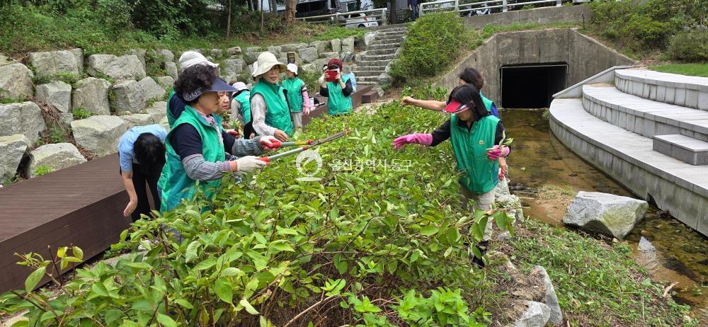 - 사진설명 동구 남목3동 새마을부녀회(회장 김영유)는 9월 19일 오후 3시에 회원 15명이 동부동 너나들이쉼터에 수국 80주를 심고 주변 환경정비를 실시했다.